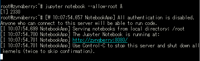 と入力し、コンソールに表示された http://zynqberry:8080/ をクリックします。