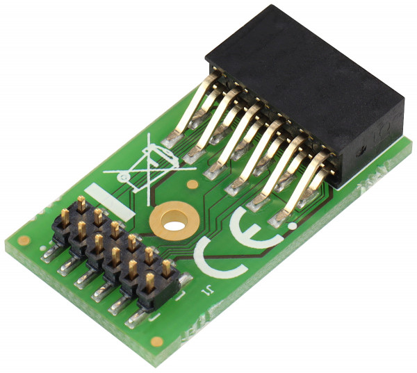Trenz Electronic CR00005-01-1は、CRUVI LowSpeedからDigilentPmodインターフェースへの非常にシンプルなパッシブアダプターです。純粋なパッシブワイヤは、2つのコネクタ間にのみ設計されています.1つの余分なM3穴があるため、場合によってはアダプタをいくつかのベースに固定できます.5V電源がない場合は、ヘッダー用の取り付け穴がありますが、通常は必要ありません。ほとんどのCRUVIボードは5V電源を必要としません。詳細については、www.cruvi.comをご覧ください。