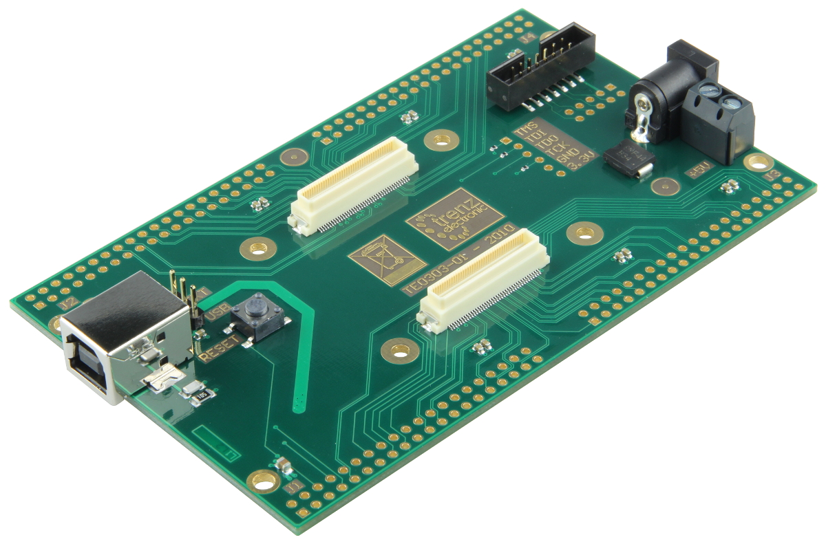 Trenz Electronic TE0303プロトタイピングキャリアボードは、Trenz Electronic TE0300およびTE0630産業用マイクロモジュールへの低コストの接続と拡張を提供します。デモキャリアボードの合計は42の差動信号ペア 100オームの差動インピーダンスでヘッダーコネクタJ1〜J4にルーティングされます。 これらのラインは、差動ペアごとに最大666 Mbit/sの高速信号に使用できます(Xilinx Application Note XAPP485を参照)。 デモキャリアボードの合計は26個のシングルエンドライン ヘッダーコネクタJ1〜J4にルーティングされます。 これらのラインは、低速および中速信号に使用できます。