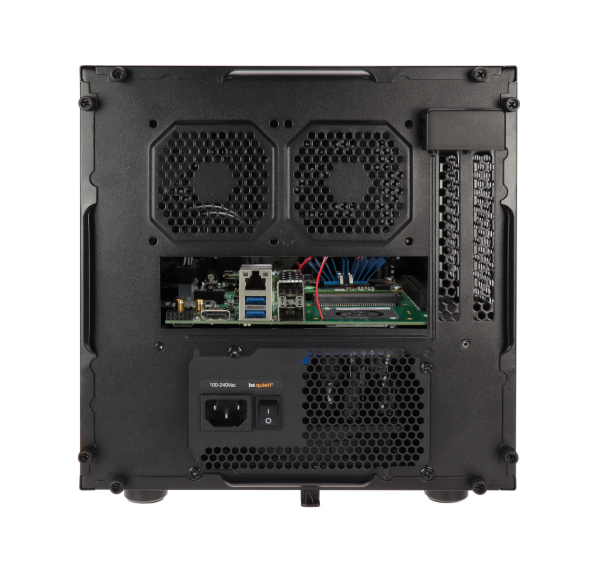 The Trenz Electronic Starter Kit TE0817-02-7DE81-AS consists of a TE0817-02-7DE81-A module with ZU7EV on a TEBF0818-02 base board including a pre-assembled heatsink, in a black Core V1 Mini-ITX Enclosure. Supplied with a Be Quiet! 400 W power supply for the enclosure, two mounted XMOD FTDI JTAG Adapter, an 32 GB micro SD card, an USB cable, a power cable and screws.