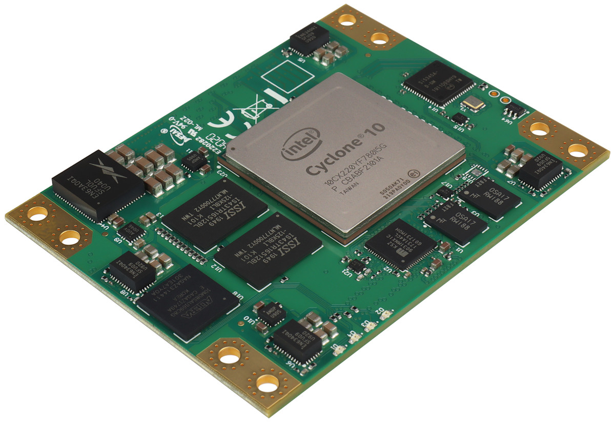 Intel Cyclone 10GXを搭載したFPGAモジュール。 2GByte DDR3L SDRAM; 6 x 8 cm