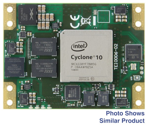 この製品の前身はTEI0006-02-220-5I です。すべての変更は製品変更通知(PCN)にあります。Trenz Electronic TEI0006は、Intel Cyclone 10GXをベースにした工業用グレードのモジュールです。Intel Cyclone 10 GXデバイスファミリは、前世代の低コストFPGAよりも高いコア、トランシーバー、およびI/Oパフォーマンスを提供します。