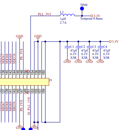 PLL_3V3は、3.3Vのラインから1uHのコイルでフィルタして供給しています。
