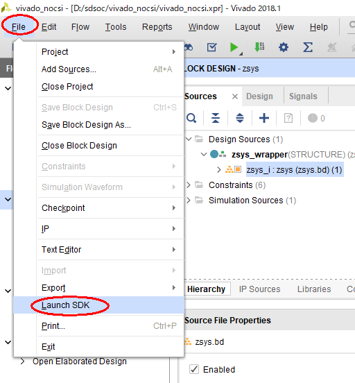- Output BIF file path: D:\sdsoc\vivado_nocsi\vivado_nocsi.sdk\fsbl\boot