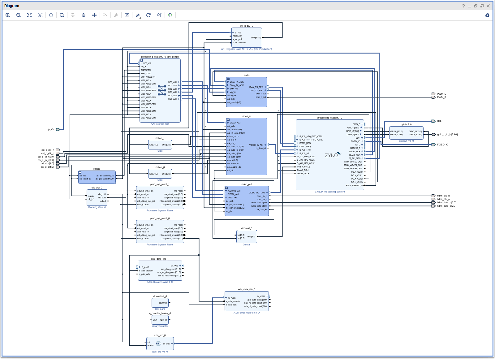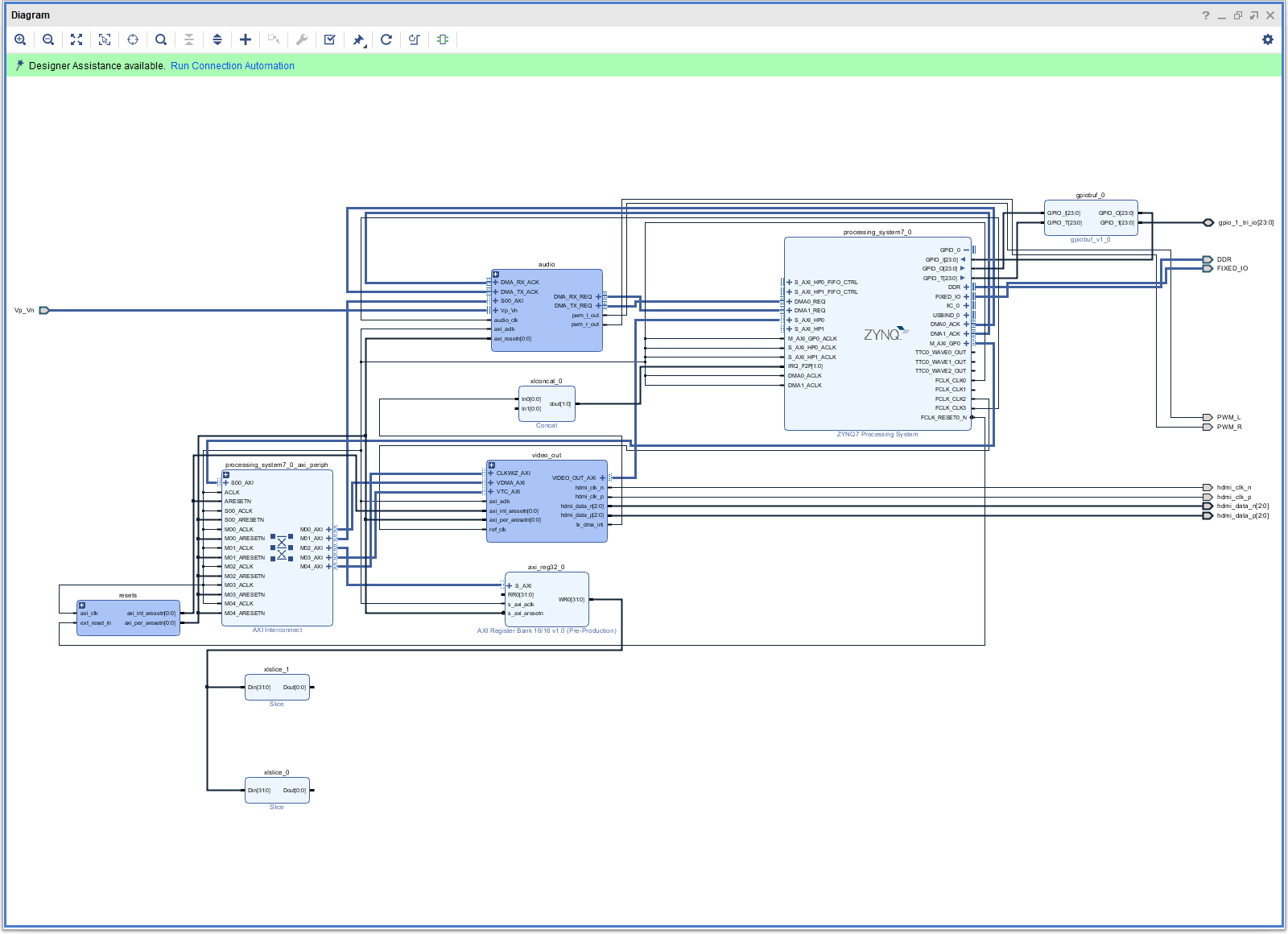 すべてが有効な最強Vivadoプロジェクトです。Trenzのリッチなサンプルプロジェクト (2017.1版zynqberrydemo1)をベースにSDSoCカスタムプラットフォームを作成したものです。Vivado 2018.1に対応しています。HDMI出力やAudio出力のほか、CSIが有効になっており、すべての周辺ペリフェラルが使用できます。