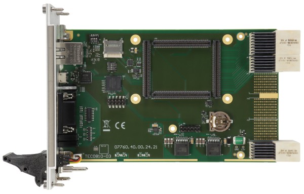 The Trenz Electronic TEC0810 is a CompactPCI Serial Card (3U form factor) that can be used as a base for Trenz Electronic modules with a form factor of 5.2 x 7.6 cm. For configuration and service, JTAG and UART are available via USB bridge and 1 Gigabit Ethernet on the front panel. 48 differential signals are available on the backplane.