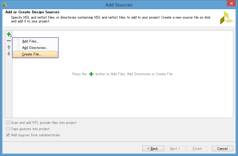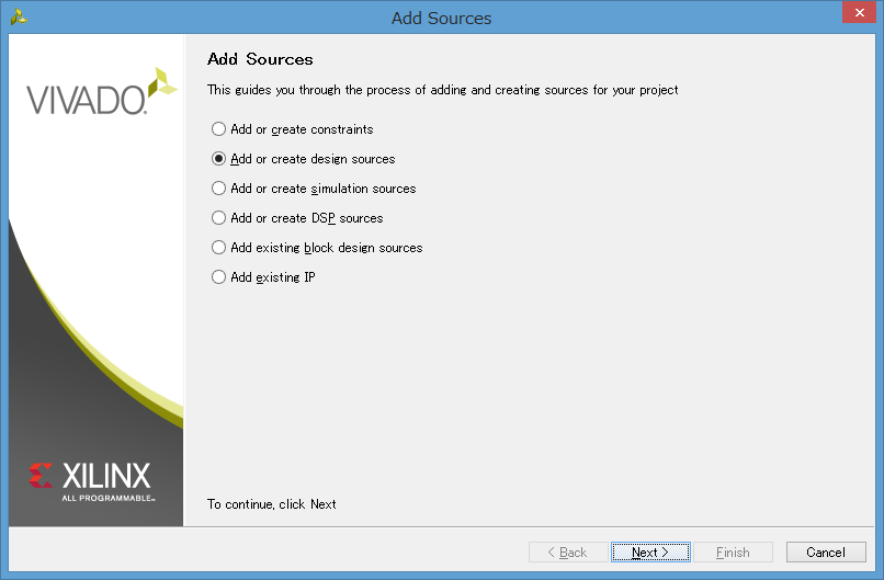 Add or Create design source を選択して Next を押してください。