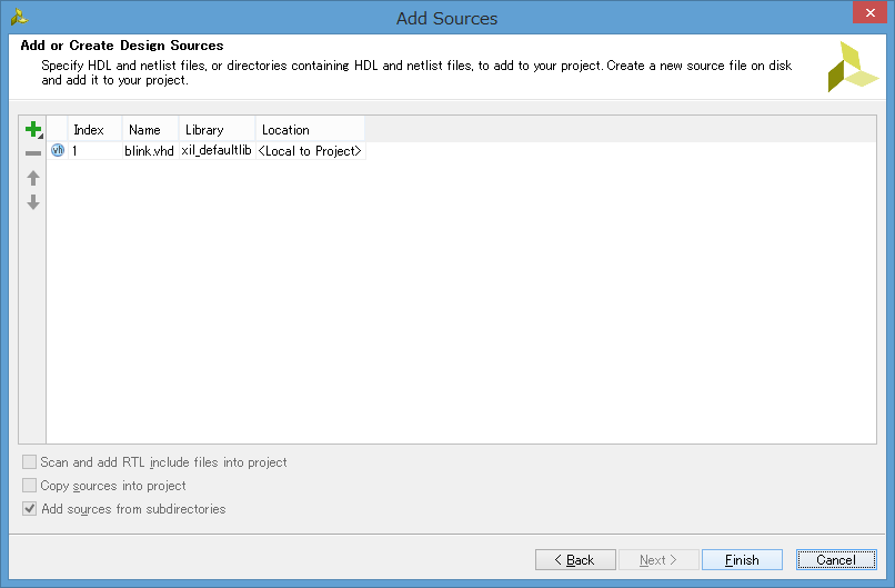 これでソースコード(blink.vhd)が作成されます。