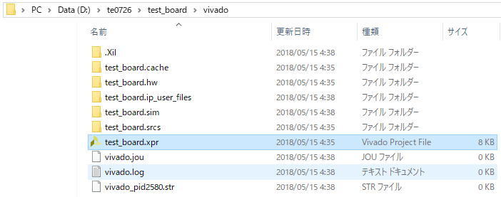 Bitstreamファイルはvivado\test_board.runs\impl_1フォルダに、