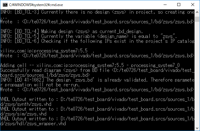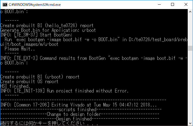 ZYNQ用のスクリプトではBoot.binの生成まで行われます。
