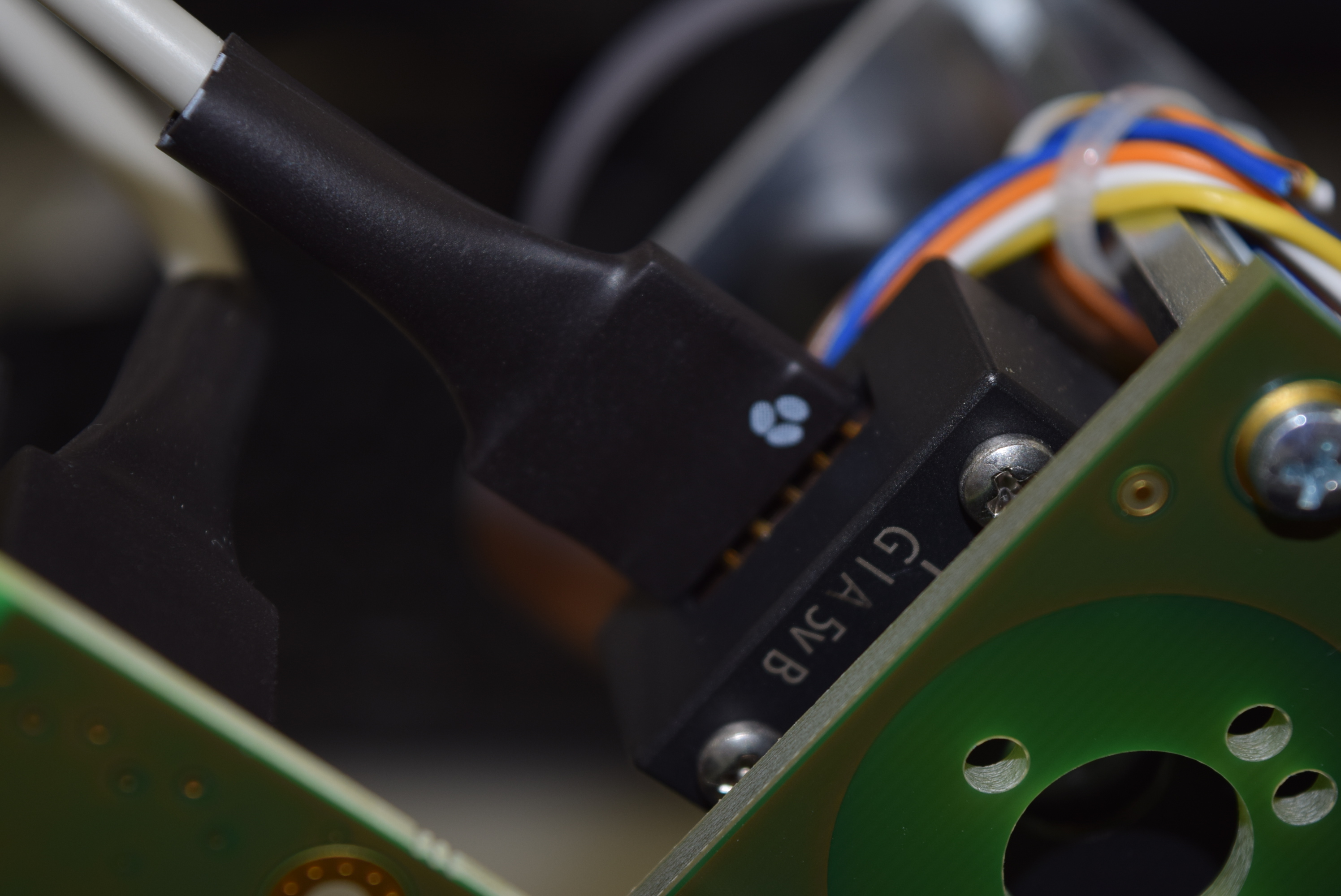 赤丸の部分がボルト止めする部分です。次にモーターへ6ピンケーブルを接続します。