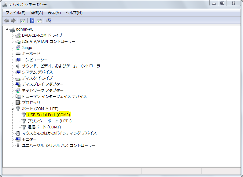 - デバイスマネージャーを確認して正しいCOMポートを選択してください。