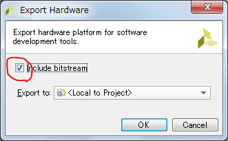 以下のウィンドウが表示されるので、Include bitstreamにチェックをいれ OK ボタンを押します。