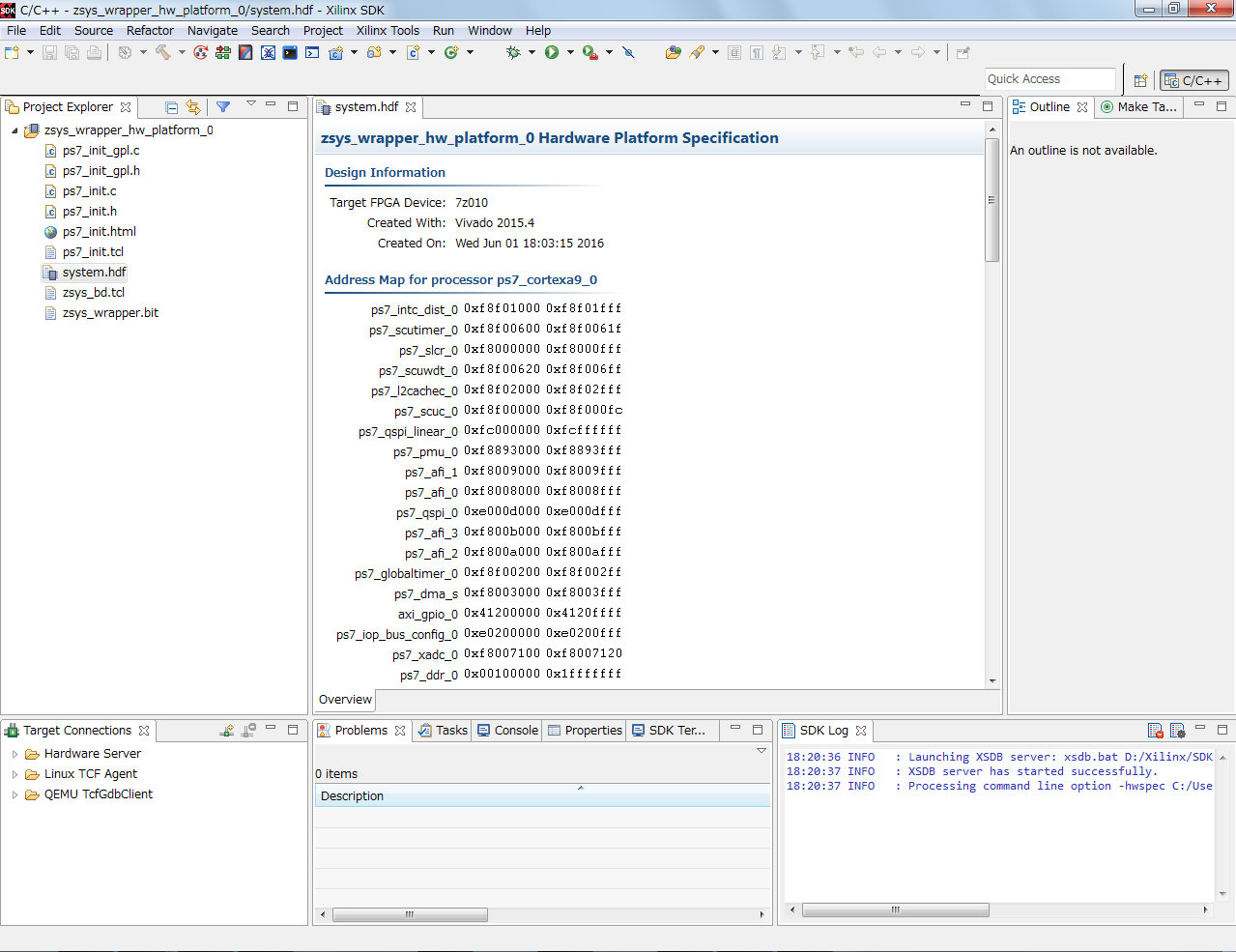 画面左 Project Explorer に led_blink, led_blink_bsp が追加されるので、