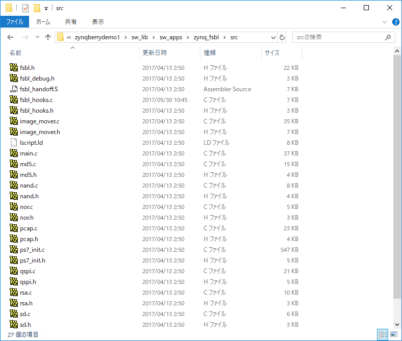 Trenzのサンプルプロジェクトに含まれているsw_lib\sw_apps\zynq_fsbl\srcフォルダにあるTrenz製のfsblソースを、D:\sdsoc\vivado_nocsi\vivado_nocsi.sdk\fsbl\srcフォルダに上書きコピーします。