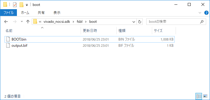 D:\sdsoc\vivado_nocsi\vivado_nocsi.sdk\fsbl\にbootというフォルダを作ります。