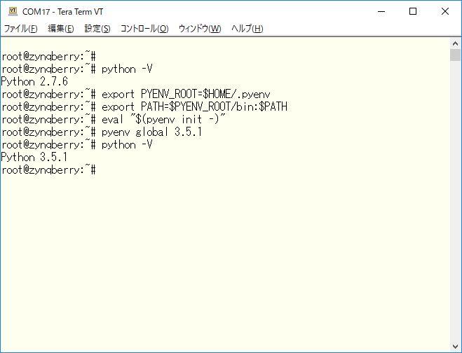 Python 3.5.1 と表示されれば成功です。Python 3.5.1に切り替わっています。