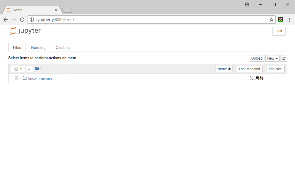 ブラウザでhttp://zynqberry:8080/にアクセスすると、Jupyter notebookにアクセスできます。
