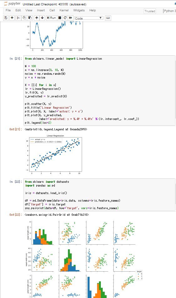 numpy pandas matplotlib seaborn scikit-learn plotlyがインストールされているので、綺麗なグラフなども描けます。