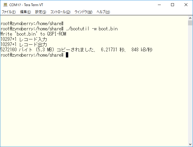 起動用のQSPI ROMがboot.binで上書きされます。(このboot.binには、SDSoCのドライバで認識される回路が入っているので、不用意にSDSoCアプリを起動してもハングアップすることはなくなります。)
