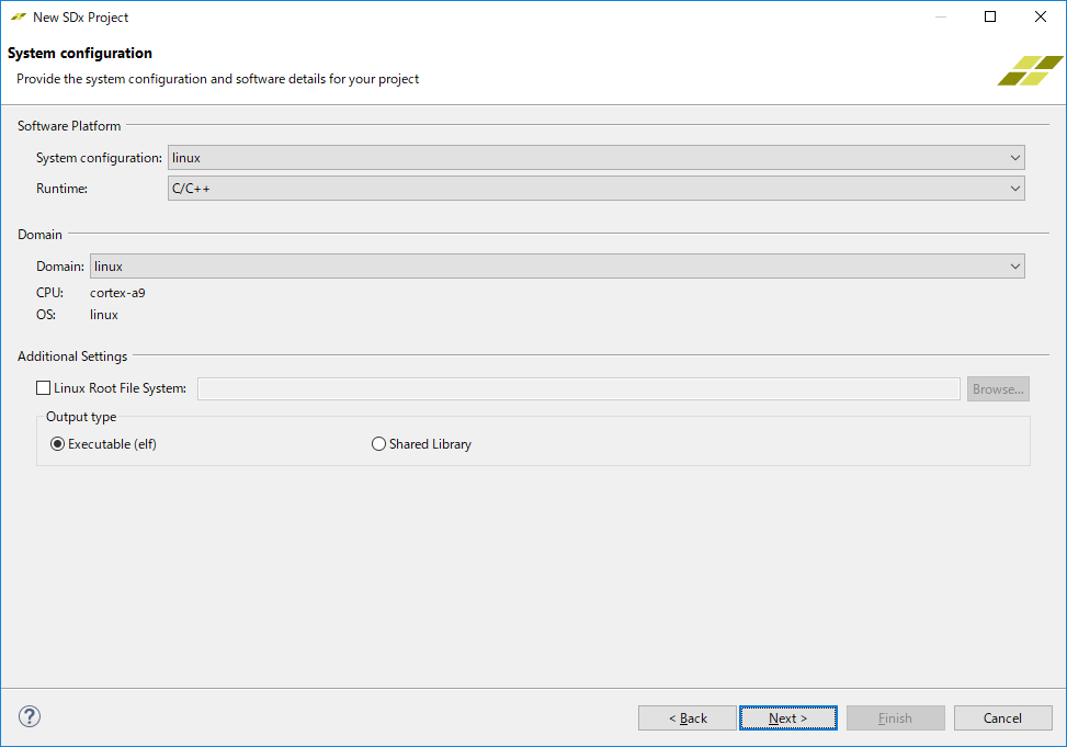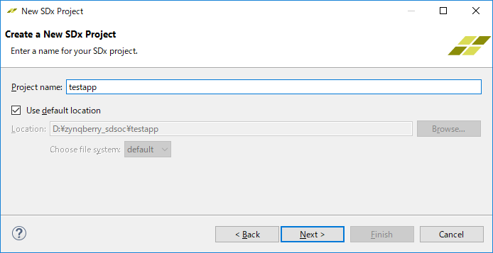 [Create SDx Project] -> [Application Project]とやって、 Project nameに適当な名前を付けます。