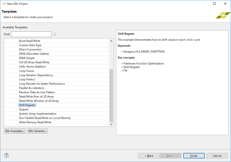(ここではShift Registerを選びます。FIRフィルタのサンプルのようです)