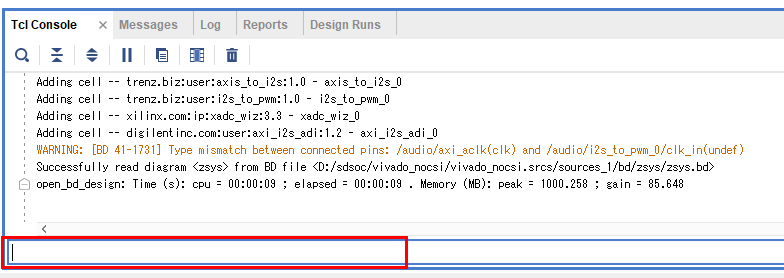 下記のTclコマンドを入力します。
