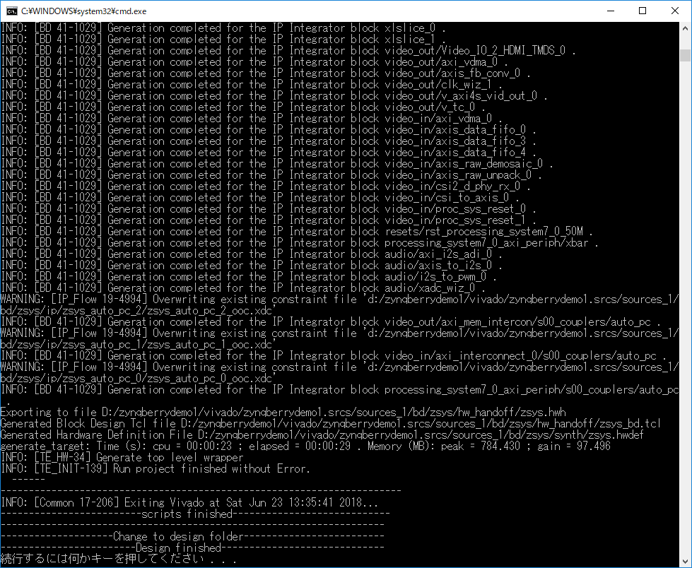 もしエラーが出てで、設定を変えてやり直す場合は、design_clear_design_folders.cmdを一度実行してからバッチファイルを起動してください。